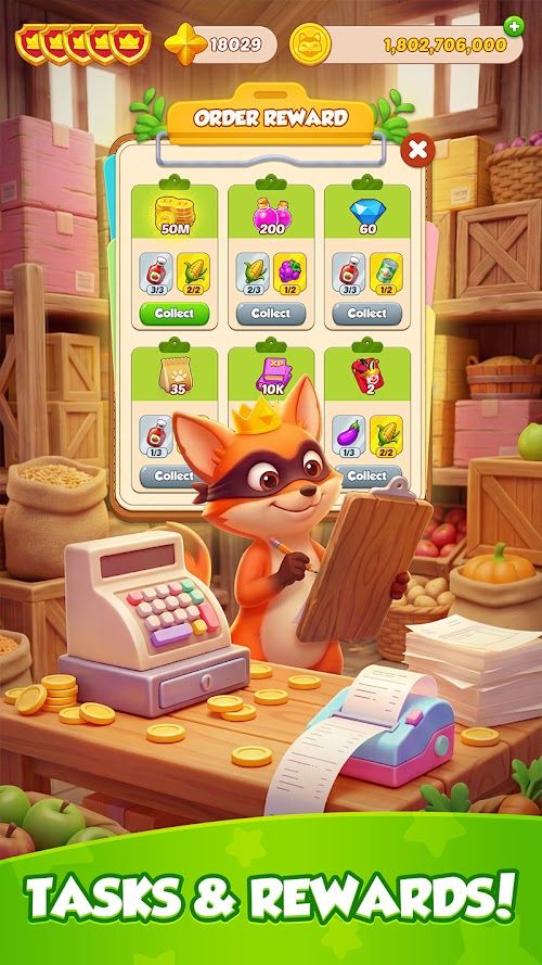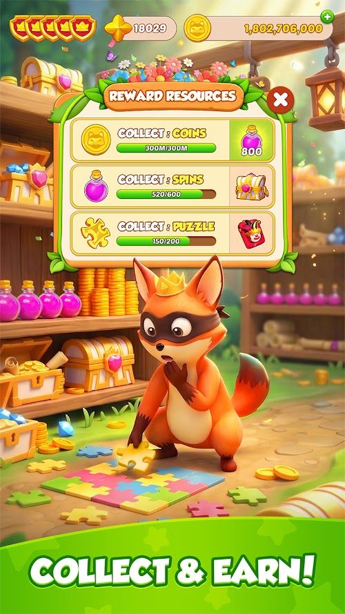 Crazy Fox by ASTAK TECH combines slot machine spins with village building across over 600 themed fantasy worlds, while incorporating a parallel card collection meta-game where players accumulate character cards through gift chests to complete themed albums. Each completed album awards significant coin bonuses and pet tokens enhancing gameplay advantages.